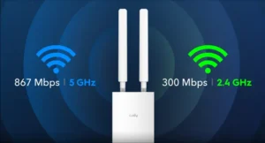 Performances de couverture Wi-Fi testées dans quatre scénarios, obtenues grâce à la technologie Beamforming et à deux antennes externes. Si votre espace est trop grand pour être couvert par un seul point d’accès, vous pouvez étendre votre couverture Wi-Fi dans un réseau maillé en ajoutant un autre point d’accès Cudy.